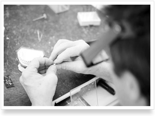 Facettenreiches Handwerk wird mit Kunst, den besten Materialien und Techniken kombiniert, um den höchsten Ansprüchen der Zahnästhetik gerecht zu werden. Eine intensive Zusammenarbeit auf Augenhöhe sowohl mit Behandler als auch mit Patient liegen uns am Herzen.